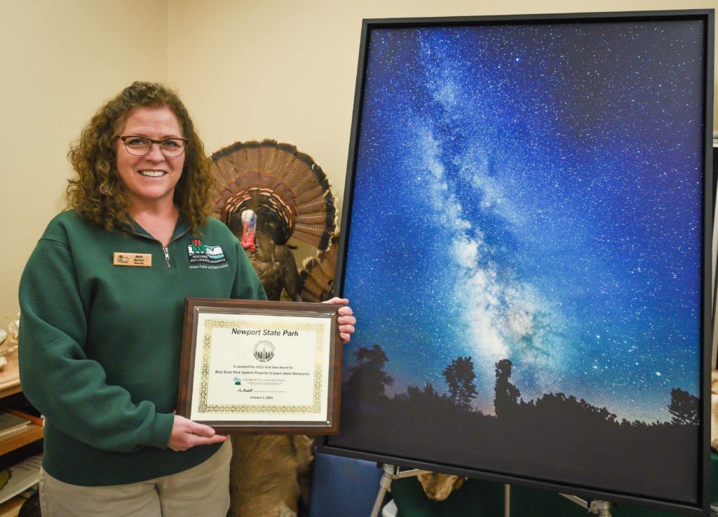 Thanks to all of you who voted and helped Newport win a 2021 Gold Seal Award for the Best State Park System to Learn about Astronomy! We are so proud of our Dark Sky Park and everyone who helps us protect it. Here is Park Naturalist Beth Bartoli with the award and an iconic image of the Newport dark sky by Denny Moutray.