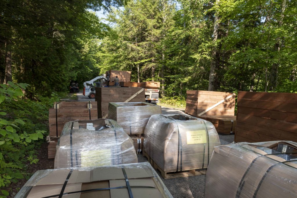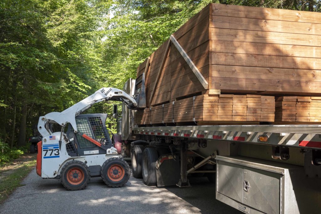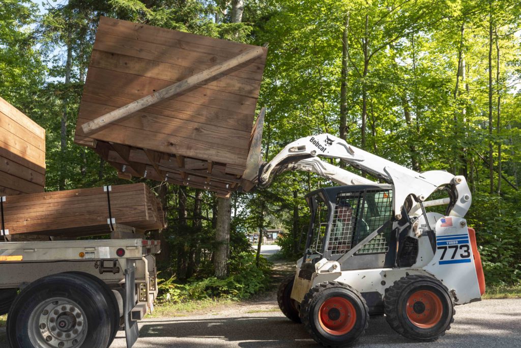 Delivery of construction material from Custom Manufacturing (Clinton, WI) occurred earlier this week. Greg Thoma (Sister Bay, WI) worked with us to unload and move materials down the trail. The finished boardwalk will be 1,800 feet in length. This first delivery comprises just the first 600 feet of the project.