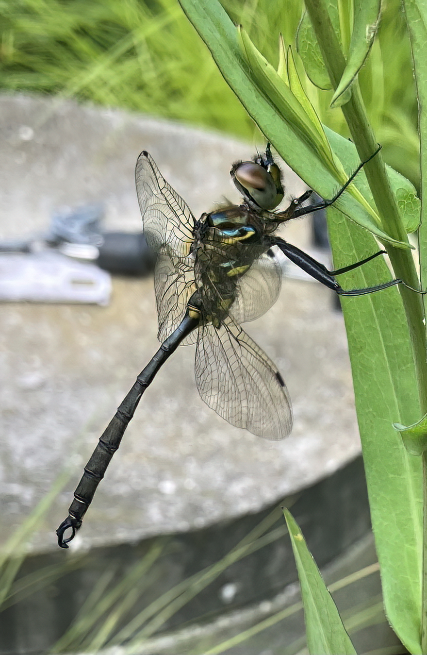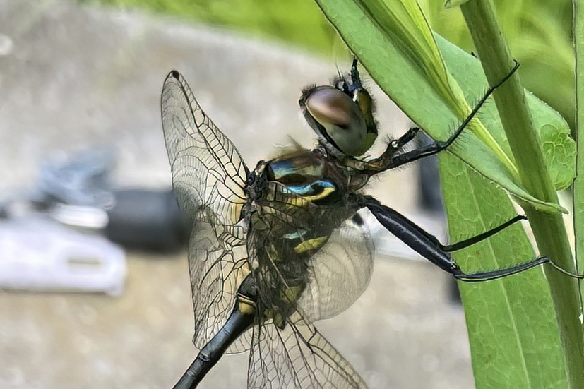 On the 17th of July, I was making my quiet rounds through that area when my attention was drawn to a large dragonfly hanging out on a Cup plant (Silphium perfoliatum). I started taking pictures as I eased forward, hoping at least one of them would show details of the dragonfly.
