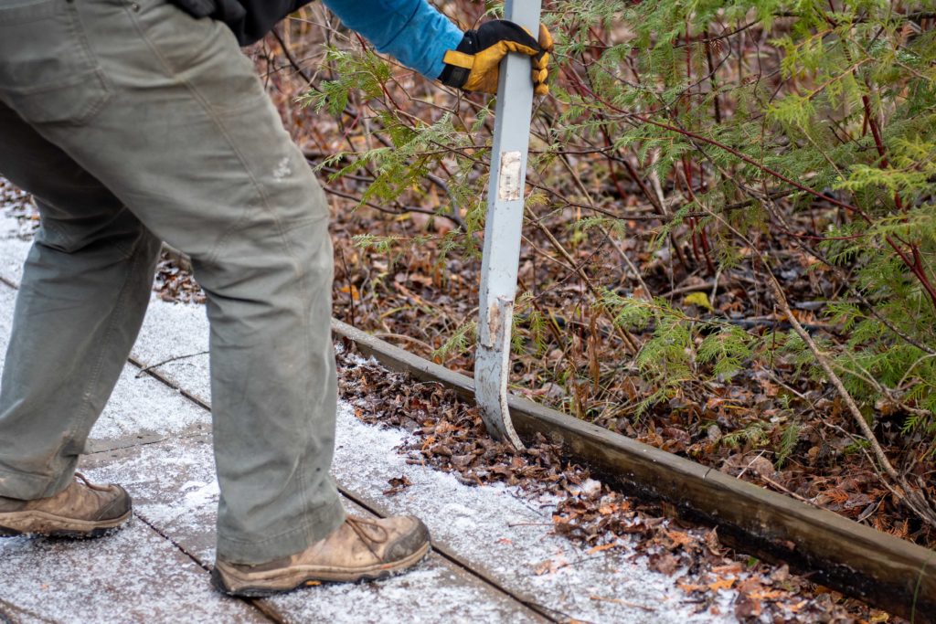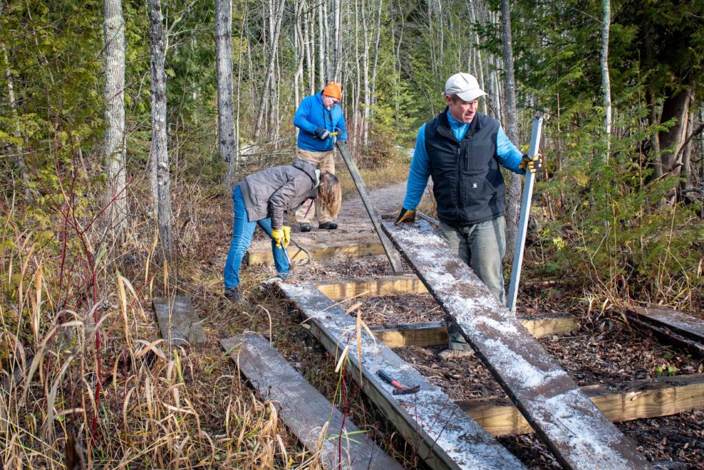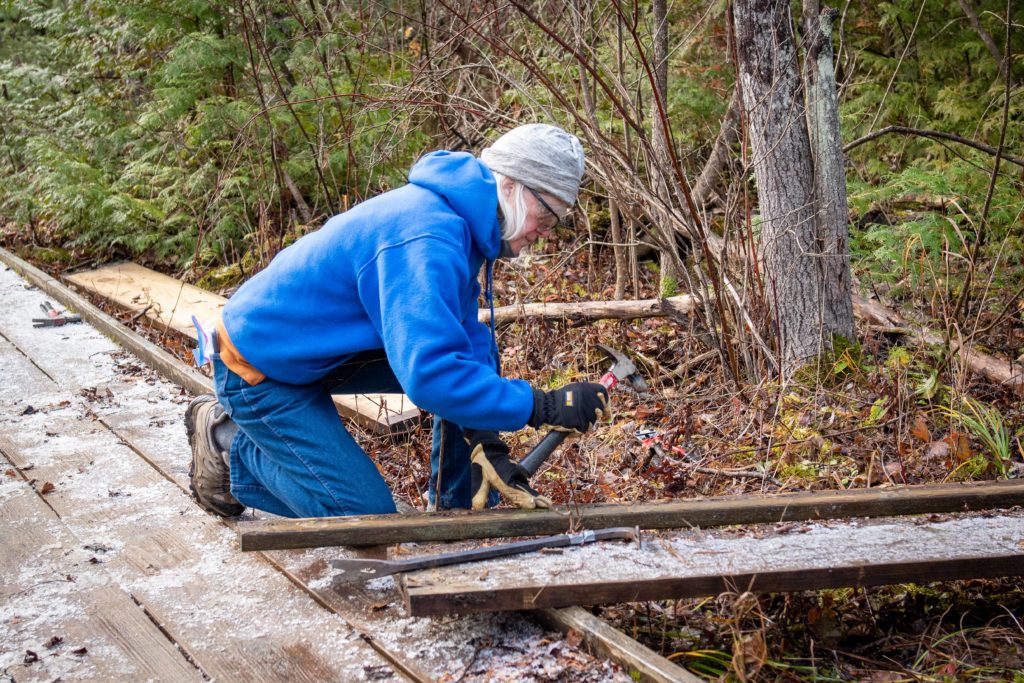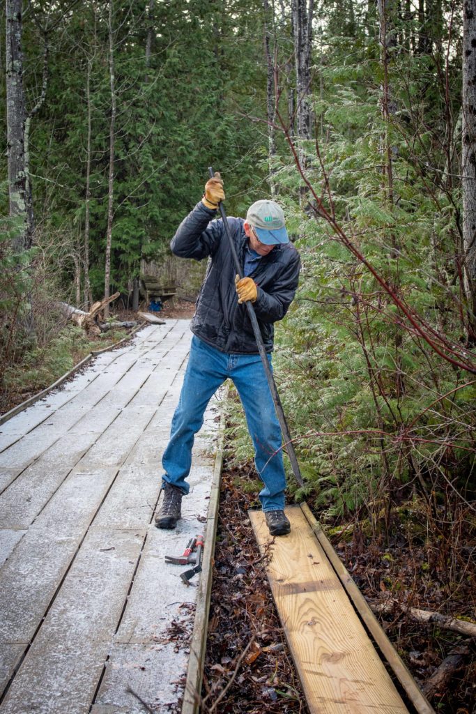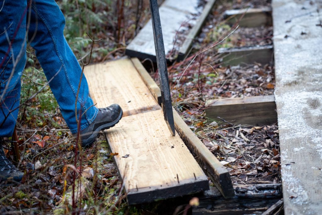 Over the course of several work days in November, NWS volunteers removed all four ground-level segments of boardwalk from the Fern Trail.